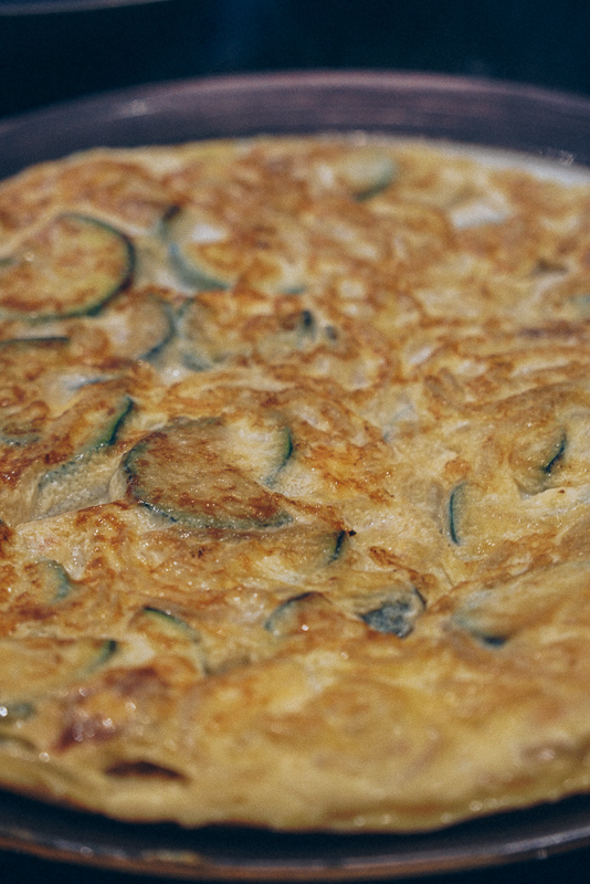 This recipe is a good variation of the Spanish potato tortilla. Instead of potatoes, courgettes (or zucchinis, if you live across the pond). You could use other vegetables too: eggplant, artichoke, sweet potato…