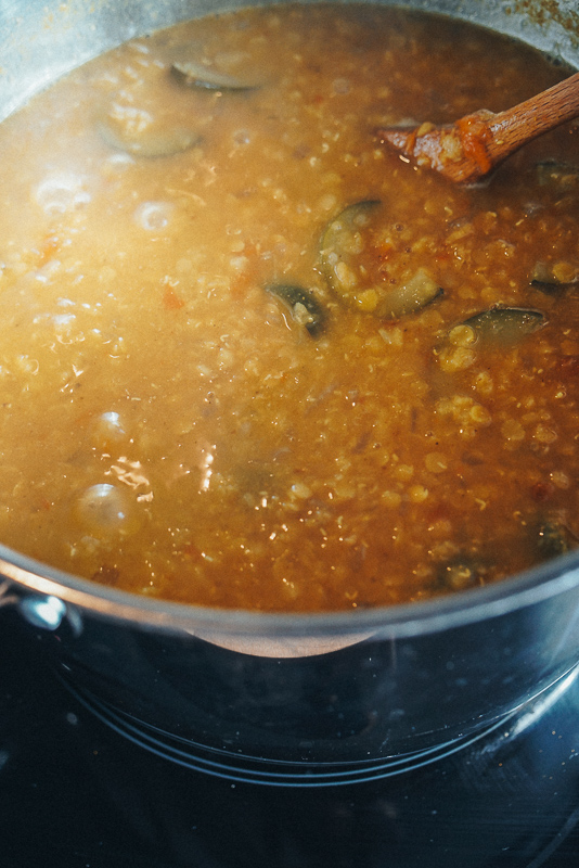 After researching some Indian recipe websites and reading through the ingredient list, I noticed most dal recipes don’t incorporate whole vegetables. However, I like having the tomatoes and courgettes in this one. You can choose to use them or not, or perhaps you have potatoes and broccoli in your fridge and you want to throw them in too, why not?