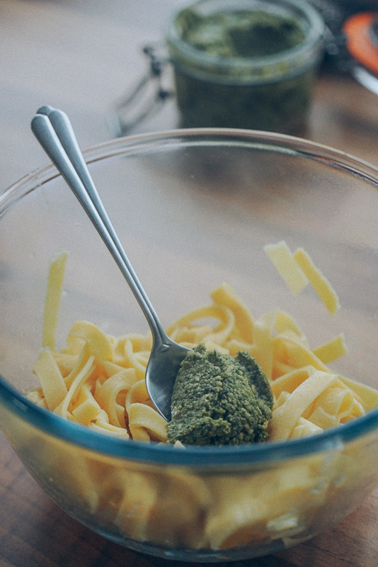 Although I love making the pesto myself I admit I sometimes buy it in the store too if I can’t find the fresh basil anywhere. The one thing I make sure then is to check that the pesto is made with as few ingredients as possible and that no sugars or additives have been used. Most use very little basil, not the best oil (and lots of it) or may contain added and unnecessary ingredients. Making it yourself is a cheap and easy way though, and it can last in your fridge for up to a week if you keep it in a sealed container.