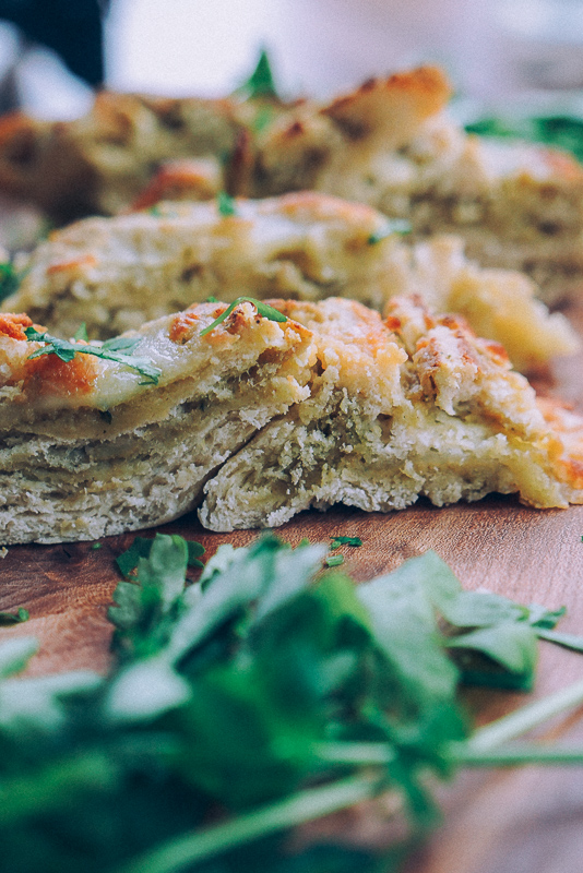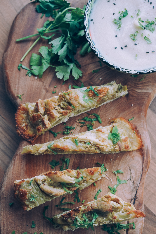 This is all amigos! I just had a few slices of this pesto bread with my cauliflower soup. Below are the bread recipe and some ideas to fill it with. You could also bake this bread alone in small portions, without any filling. Enjoy the process!